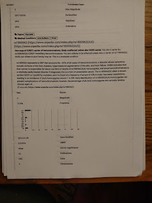 More knowledge, more power: for the past year, my doctor and I have been confounded by my chronic fatigue and skewed anemia profiles. After more than $2000 of testing, I presented to her the answer for a mere $5. Thank you, Promethease. I have 2 mutations that produce hemochromatosis.